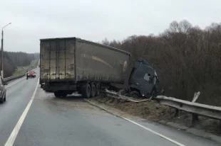 Недалеко от Першино фура улетела в кювет, сбив отбойник