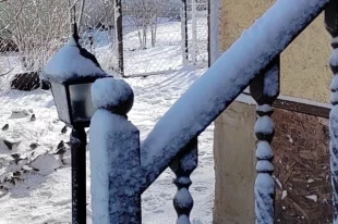 Сосульки, по словам жильцов, свисают прямо над входом, и каждый день люди проходят под этой «русской рулеткой».
