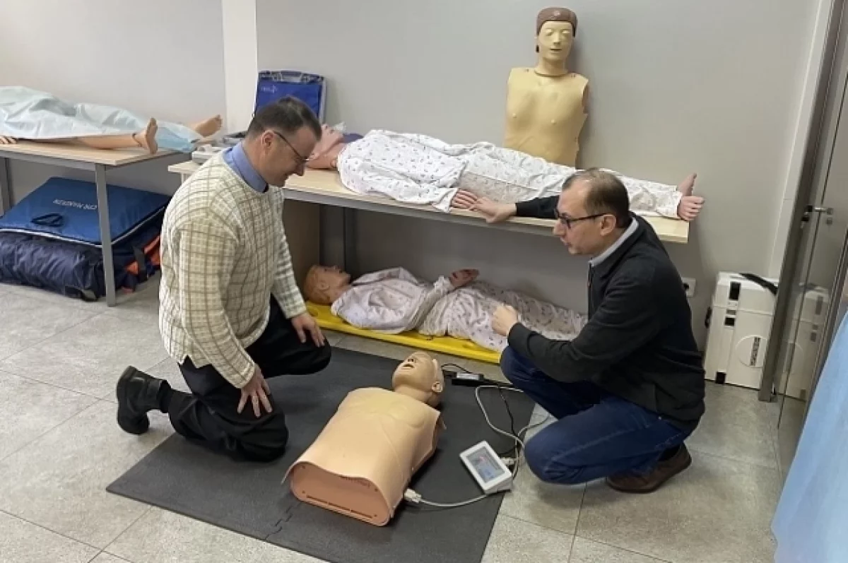 Под руководством специально обученных инструкторов участники отрабатывали навыки на современных реалистичных манекенах-тренажёрах.