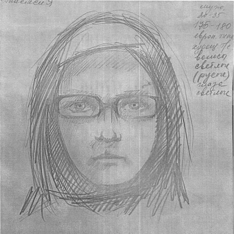 Правоохранители составили фоторобот подозреваемого, а также приложили его подробное описание: «Разыскивается мужчина славянской внешности худощавого телосложения в возрасте 20–35 лет, рост 175–180 см., волосы светлые (русые), носит очки, был одет в чёрную куртку с капюшоном (капюшон был надет на голову), чёрные штаны».