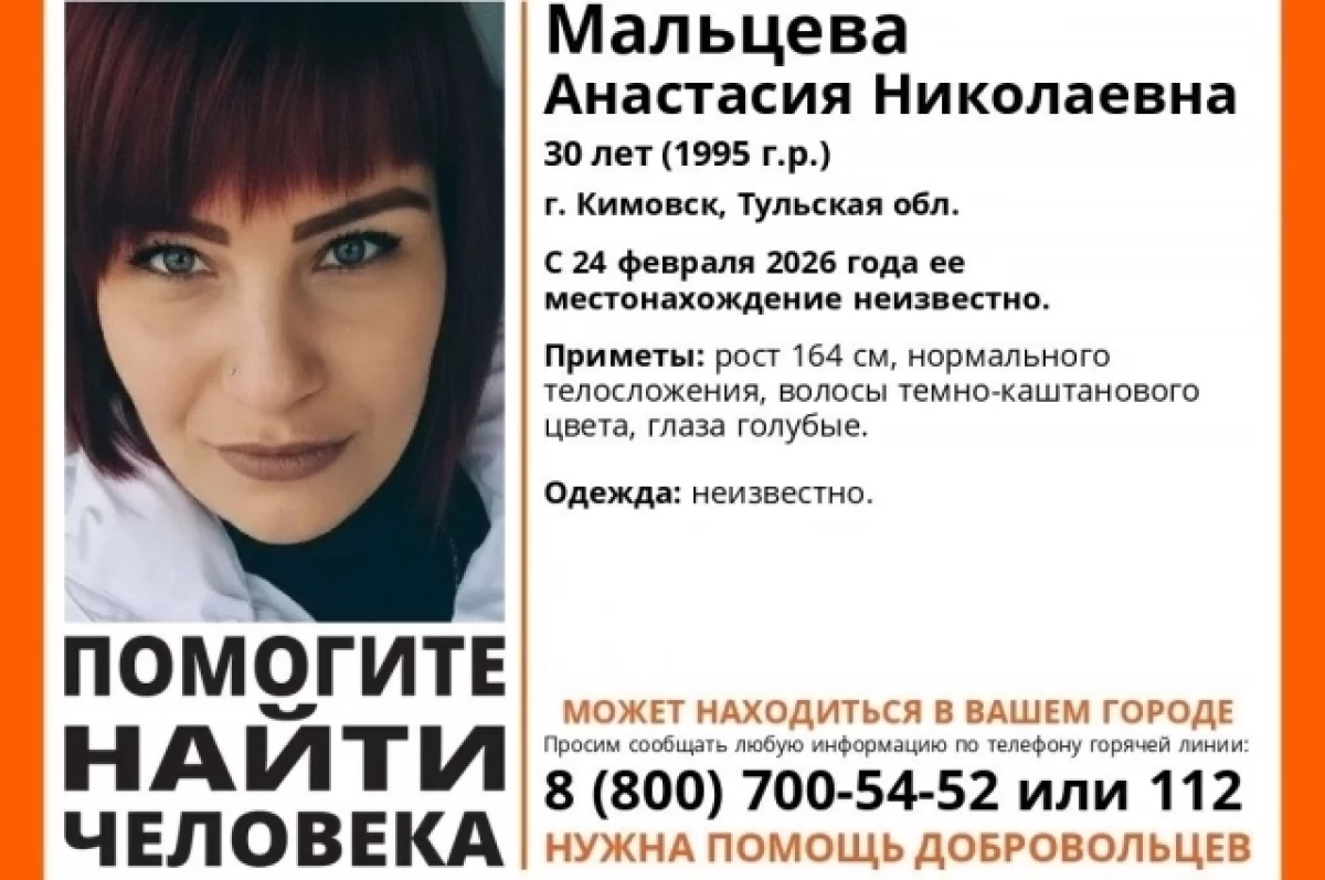 В Кимовске ищут пропавшую Анастасию Мальцеву. Местонахождение 30-летней женщины неизвестно с 24 февраля. Об этом сообщает поисковый отряд «ЛизаАлерт».