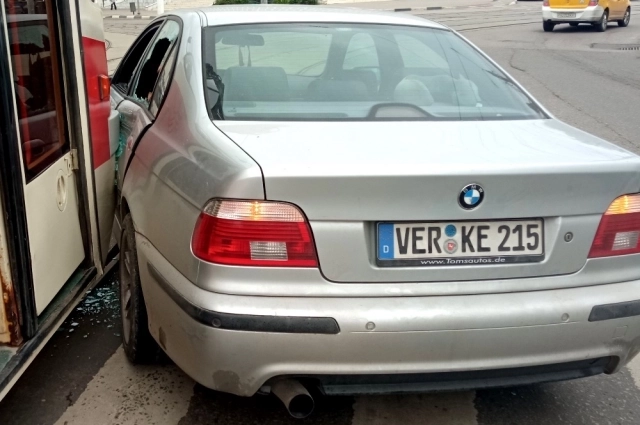 Похоже, что водитель BMW намеревался встроиться с левого ряда перед параллельно идущим трамваем и что-то не рассчитал – столкновения избежать не удалось. Вагон ударил автомобиль в заднюю левую дверь и немного протащил по инерции вперёд.