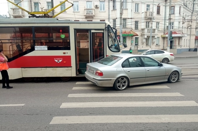 В Туле на ул. Советской трамвай протаранил BMW с немецкими номерами. ДТП произошло в районе пересечения с улицей Пирогова.
