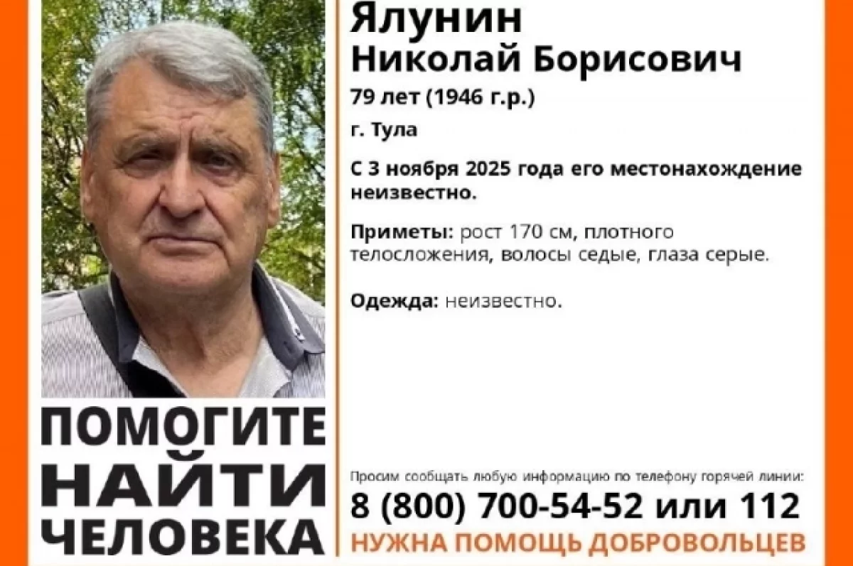 В Туле пропал 79-летний Николай Ялунин. Об этом сообщает поисковый отряд «ЛизаАлерт».