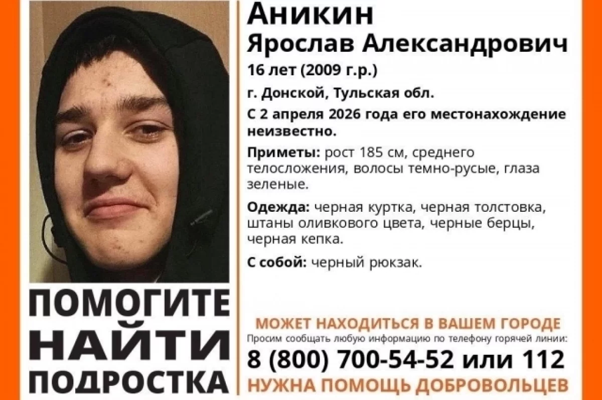 В Донском пропал 16-летний Ярослав Аникин. Об этом информирует поисковый отряд «ЛизаАлерт». Местонахождение подростка неизвестно со 2 апреля.