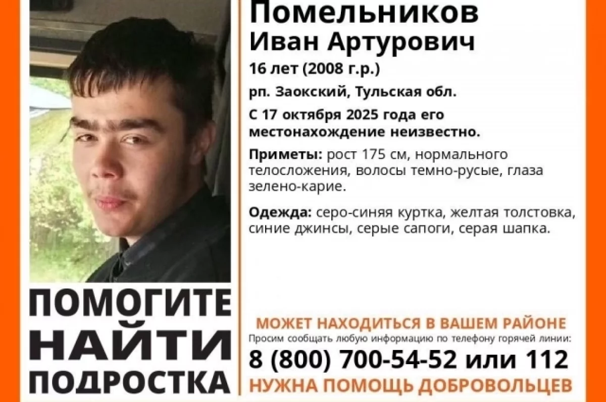 В рп. Заокский Тульской области пропал 16-летний подросток. Об этом информирует поисковый отряд «ЛизаАлерт».