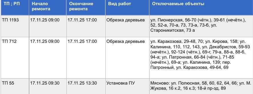 В Туле по ряду адресов отключат свет 17 ноября. Об этом информируют «Тульские городские электрические сети».