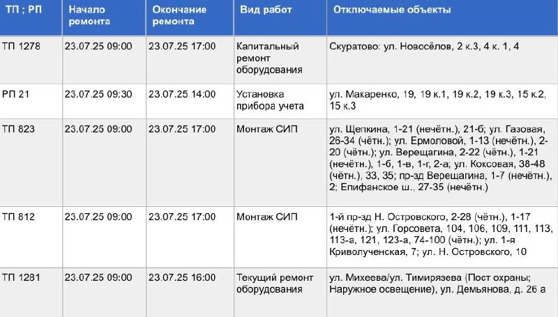 В части Тулы 23 июля отключат свет. Об этом информируют «Тульские городские электрические сети».
