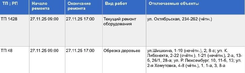 В Туле по ряду адресов отключат свет 27 ноября. Пройдут плановые работы по текущему ремонту оборудования и обрезке деревьев. Об этом сообщают «Тульские городские электрические сети». Света не будет с 09.00 до 17.00.