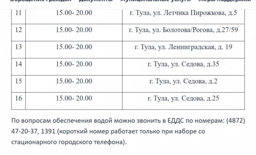 В результате данного инцидента в южной части Советского, Центрального и Привокзального округов г. Тулы, южнее улицы Пушкинской, ожидается пониженное давление холодного водоснабжения. Затронуты будут кварталы, ограниченные проспектом Ленина, улицами Рязанская, Новомосковское шоссе, Калужское шоссе, а также такие населённые пункты, как д. Гостеевка, район «Зеленстрой», п. Косая Гора, военный городок Берники, д. Берники, д. Селиховое, д. Площанки, д. Помогалово, д. Барыково, мкр. «Петровский квартал», п. Мясново, п. Лихвинка, п. Михалково, п. Новый, п. Иншинский, п. Рассвет, с. Зайцево, д. Харино, д. Хопилово и Скуратовские посёлки.