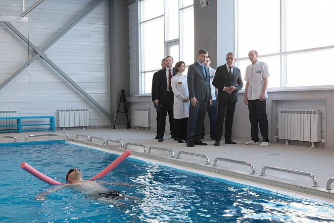 По поручению губернатора в 2025 году на средства регионального бюджета в госпитале построен бассейн реабилитационного типа 6×10 м. Он оснащён гидромассажем, противотоком и гейзером, адаптивными тренажёрами для погружения в воду, подвесной системой для разгрузки веса тела. Бассейн полностью адаптирован для маломобильных людей. В бассейне проходят реабилитацию участники СВО, а также пациенты круглосуточного стационара. Помощь им оказывают подготовленные специалисты по медицинской реабилитации, прошедшие обучение и практику на базе военных госпиталей.
