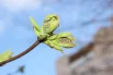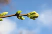 Деревья кажутся ещё серыми, спящим. Но, если подойти поближе и приглядеться, то видно становится распускающиеся листья, набухшие почки, соцветия черёмухи, вишни, сливы, сирени, которые скоро откроются во всей своей красе.