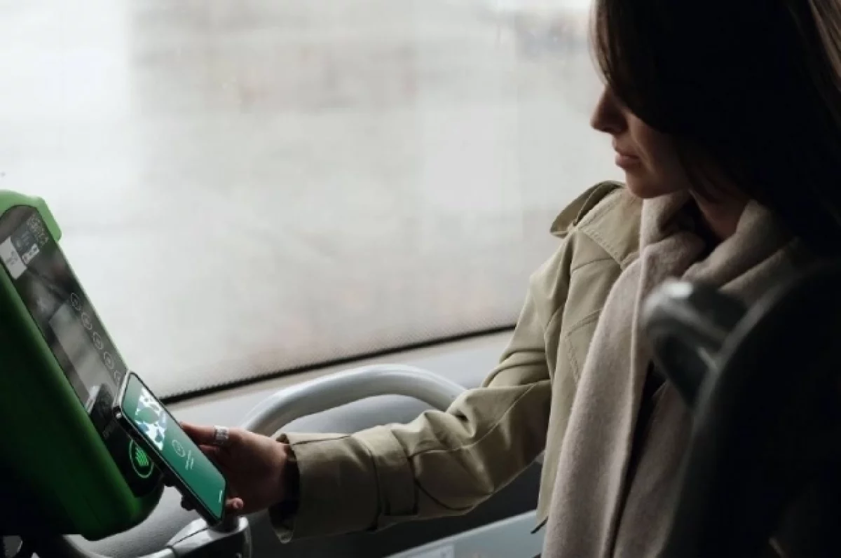 При входе в автобус, трамвай или троллейбус необходимо убедиться, что телефон поддерживает функцию бесконтактной оплаты (NFC), а затем поднести его к валидатору на несколько секунд. Увидели подтверждение оплаты на экране телефона — значит, всё в порядке, скидка применяется автоматически. Убедиться в этом можно в приложении своего банка, а также в push- или СМС-уведомлении от него.