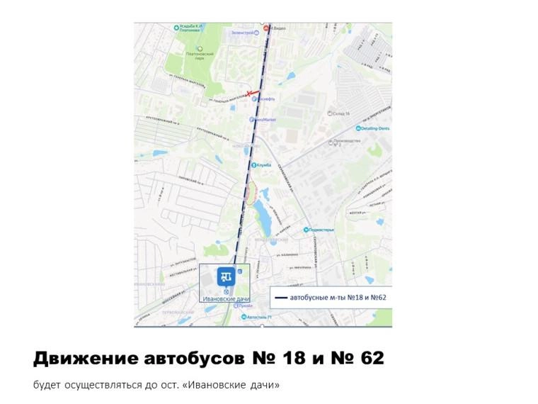 Автобусы № 18 и №62 смогут ездить по изменённой схеме до остановки «Ивановские дачи».