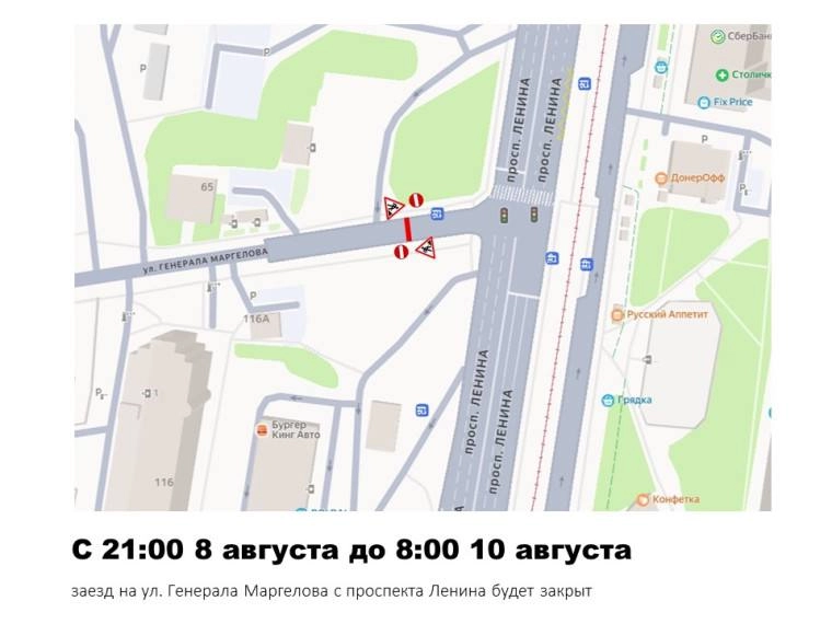 Поэтому с 21.00 8 августа до 08.00 10-го на время работ заезд на улицу с проспекта Ленина закроют. Транспорт будет ходить по новой дороге от дома №9 по Генерала Маргелова до Калужского шоссе.
