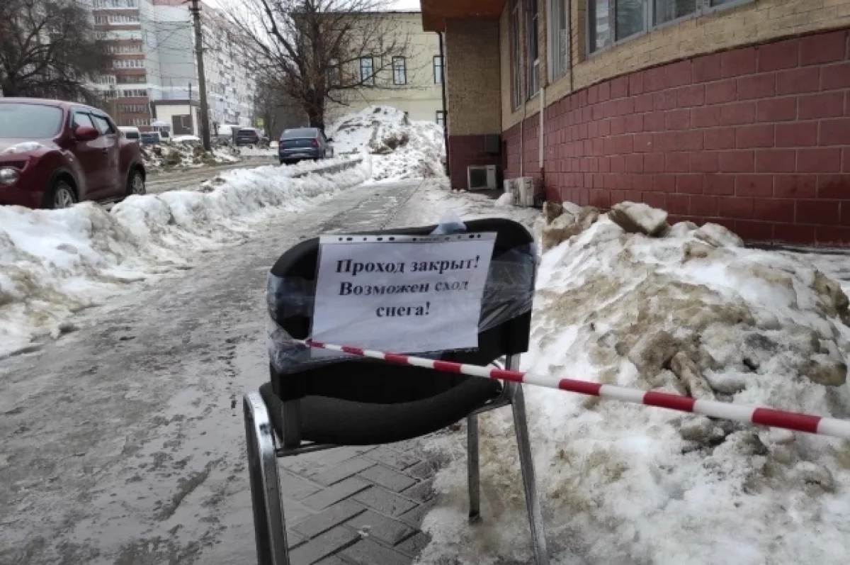 На улицах замечены сигнальные ленты и соответствующие надписи. Действительно, на фоне оттепели сход снега с наклонных кровель весьма вероятен.