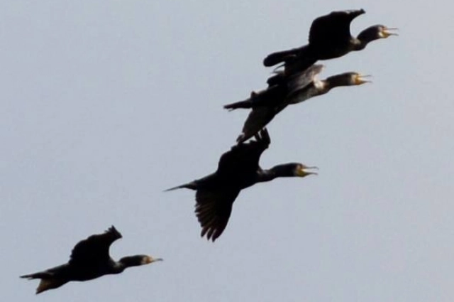«Ехала в Суворов, ни на что не надеясь. В прошлый приезд на водохранилище встретила одинокую утку и такую же одинокую чайку. Как-то скромно для такого водоёма. В этот раз было получше: и на жёлтых трясогузок посмотрела, и ласточки разные почирикали, и пустельга пролетела.... И тут бах! Стая чёрных птиц. Сфотографировала, стала дома рассматривать, да это же бакланы! Откуда у нас бакланы?» — написала на своей страничке в соцсети девушка.