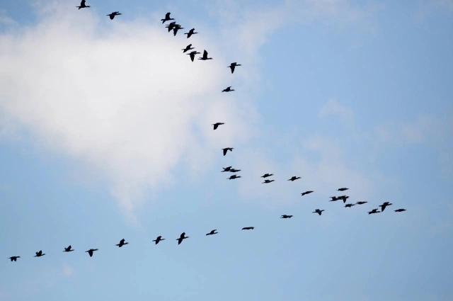 Необычную для Тульской области птицу встретила любительница наблюдений за пернатыми. Ксения Калинина, увлекающаяся бердвочингом, сфотографировала стаю примерно из сорока больших бакланов над Черепетским водохранилищем в Суворовском районе.