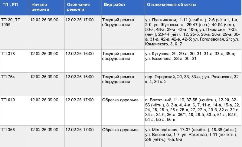 Пройдёт текущий ремонт оборудования. Также проведут обрезку деревьев. Отключения ожидаются с 09.00 до 16.00 и 17.00, в зависимости от адреса.