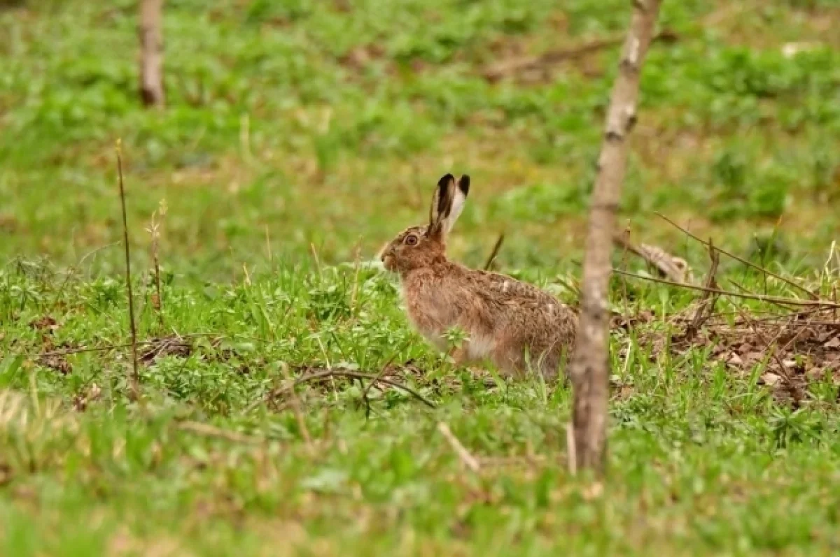 Заяц, заметив человека, не проявил особой суеты и не стал убегать. Он удерживал безопасную дистанцию, время от времени позволяя юному натуралисту приблизиться.