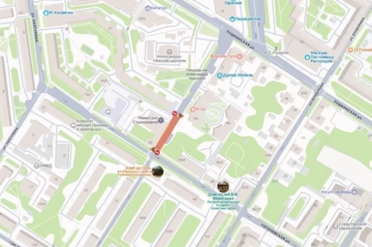 В Туле на части улицы Софьи Перовской на несколько дней ограничат движение
