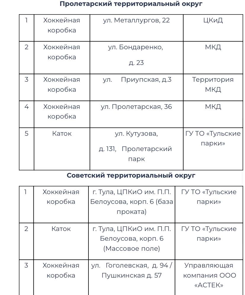 В Туле на праздниках можно посещать 22 катка и хоккейные коробки, сообщает администрация города.