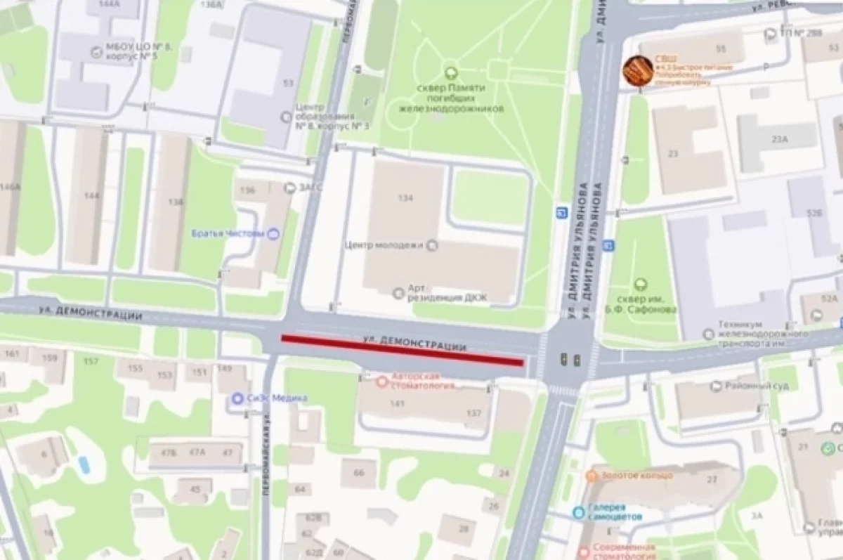Во избежание дорожно-транспортных происшествий во время проведения массовых мероприятий с 00:00 до 18:00 17 ноября на участке от улицы Дмитрия Ульянова до улицы Первомайской на улице Демонстрации запретят остановку и стоянку всех видов транспорта.