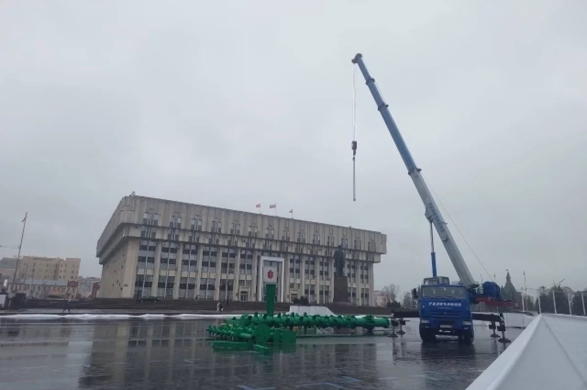 Это делают на площади Ленина. Ранее стало известно, что здесь будет ограничена стоянка транспорта с 10 ноября, это связано с установкой праздничного дерева.