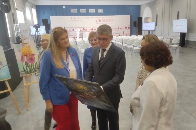 В мероприятии участвует Дмитрий Миляев. Ему подарили картину «Маленький принц» уполномоченного по правам ребёнка в Москве Ольги Ярославской.