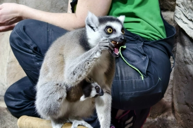В 1–2 месяца жизни лемуры начнут исследовать мир, однако при малейшем признаке опасности или по зову матери они сразу вернутся на спину или под брюшко. После завершения молочного вскармливания, малыши будут самостоятельнее. Постепенно они начнут переходить на «взрослое» меню.