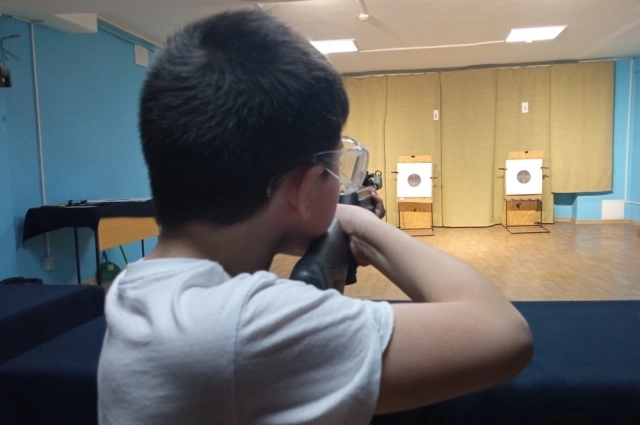 Для выполнения финального испытания участники покидают физкультурный зал Социально-технологического колледжа и спускаются в его подвальное помещение. Там самый настоящий тир. Стреляют из пневматических винтовок. И некоторые из стрелков, надо признать, весьма преуспевают...