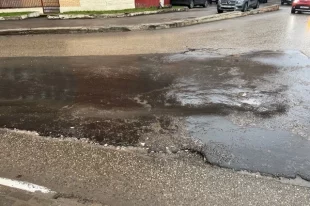 На улице Вересаева в Туле образовалась огромная яма на дороге