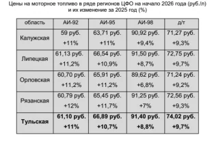 За 2025 год бензин в Тульской области подорожал в среднем на 11%